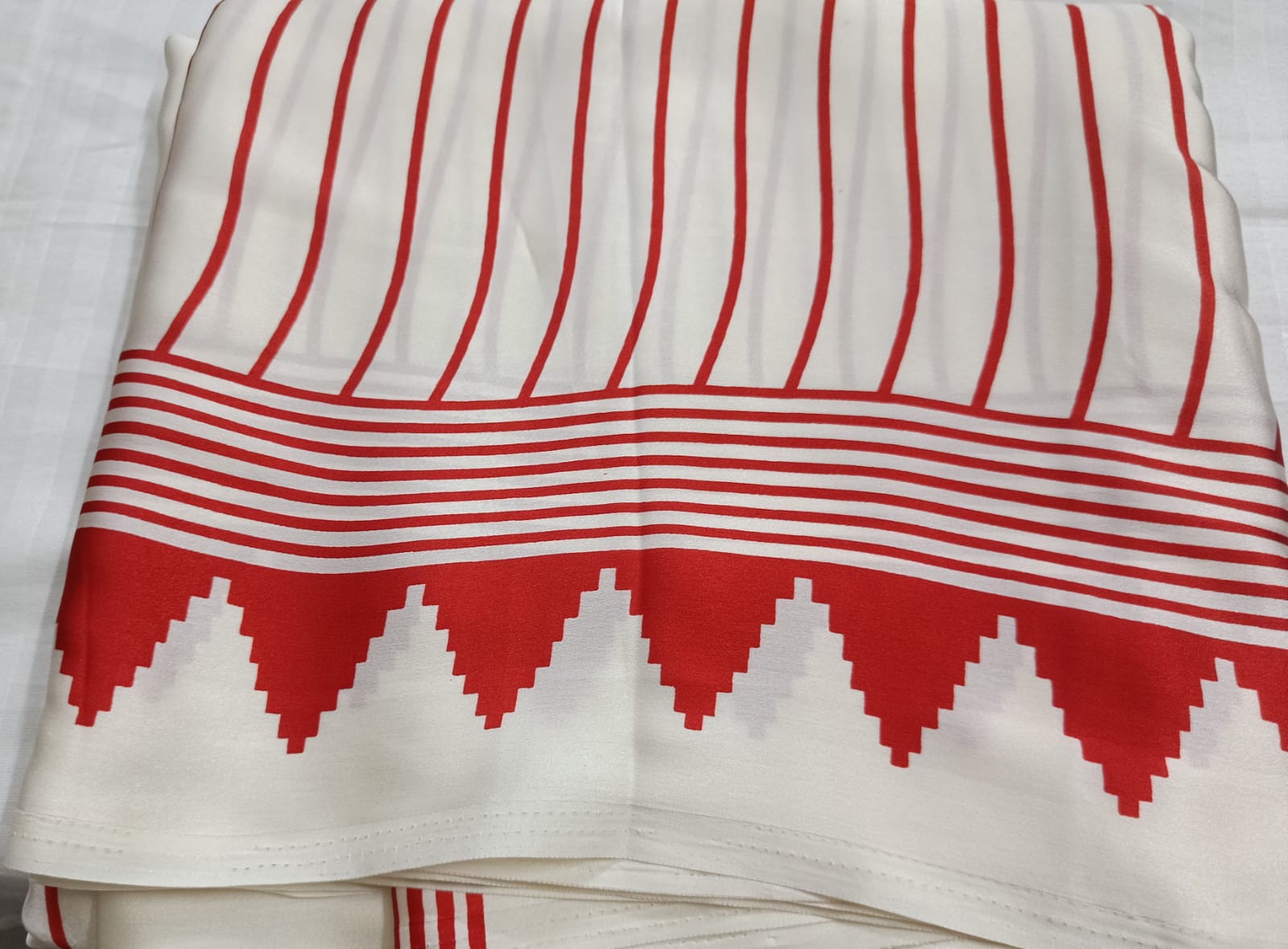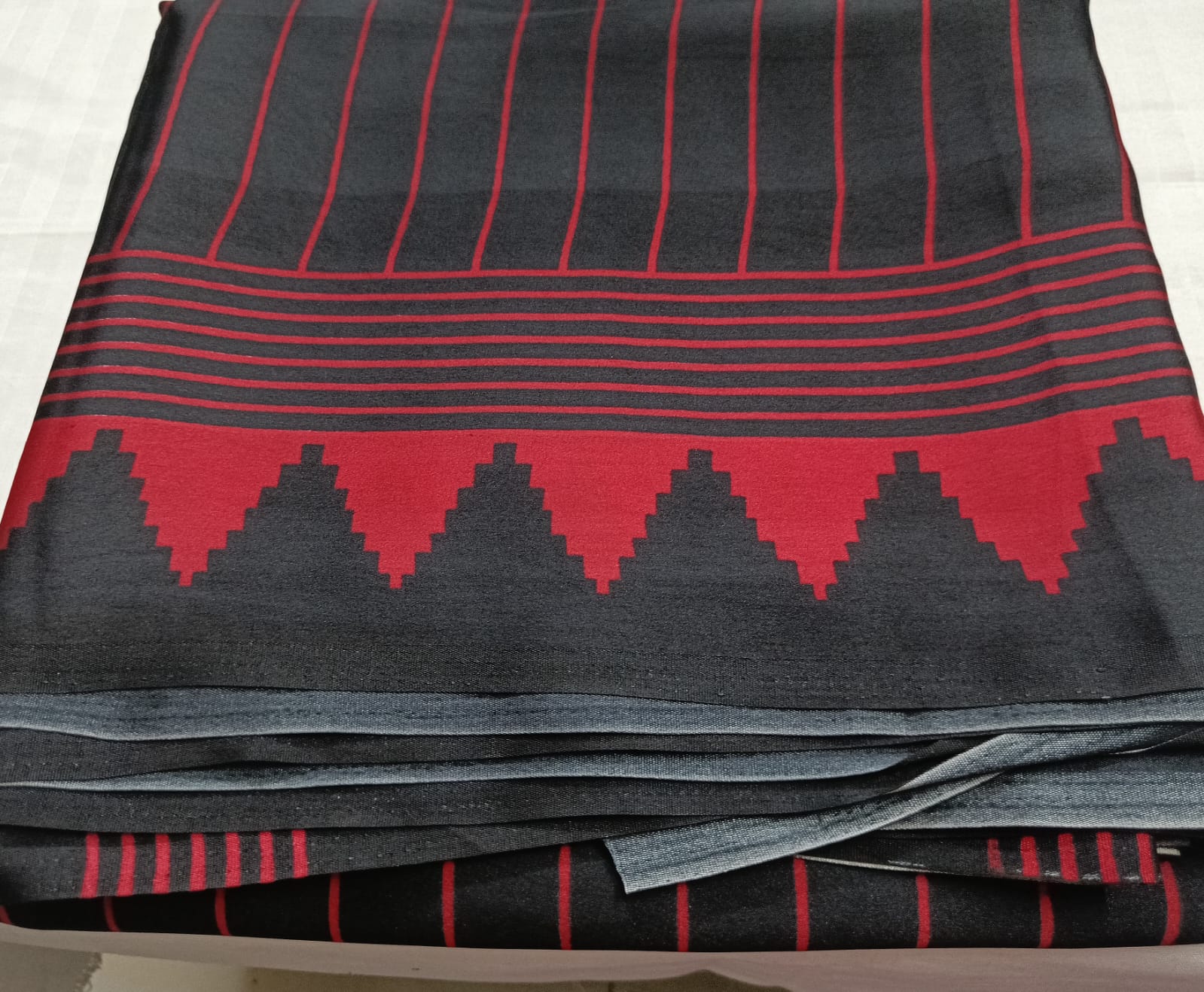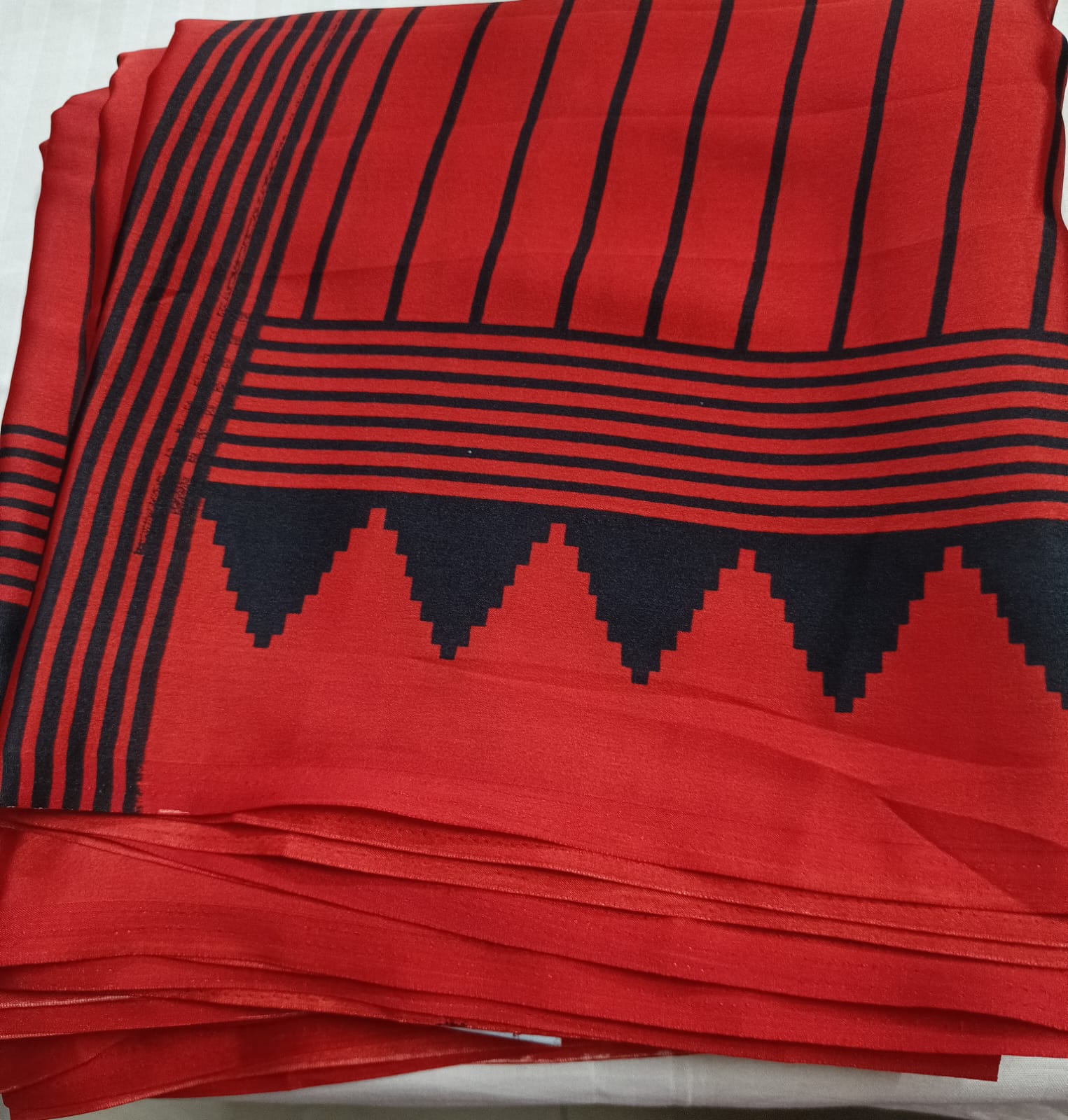 Border: Statement geometric red border for a sharp ethnic finish