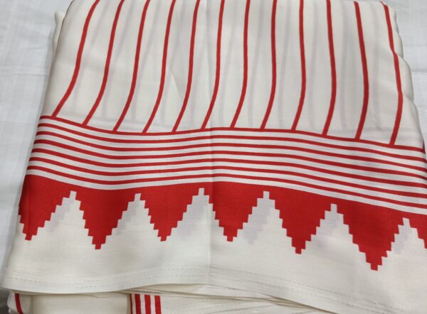 Pallu: Contrasting abstract art pattern in bold red & cream